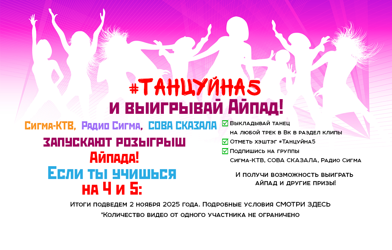 1.1. Стимулирующая акция «Танцуй на 5» (далее – «Конкурс») не является лотереей, а проводится в рамках продвижения услуг АО «Сигма-КТВ» (далее – «Организатор») совместно с Радио «Сигма» и телеканалом «СиТВ».